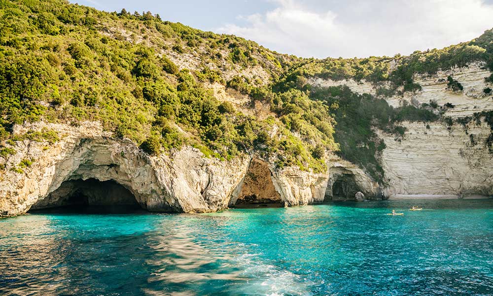 Carved by the sea over centuries, the Blue Caves on the western coast of Paxos are among the island's most iconic natural wonders.